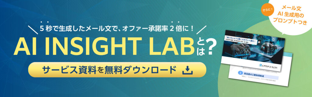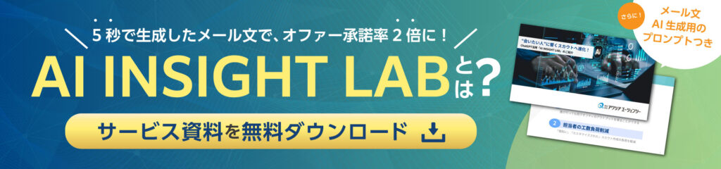 株式会社アクシアエージェンシーが提供するAI Insight Labは、返信率や作業時間などの課題に真正面から向き合うために開発された、スカウト文面自動生成のAIツールです。