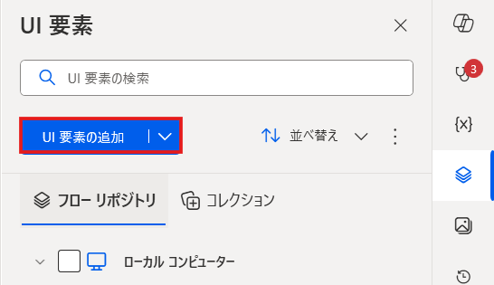 ①「UI要素の追加」をクリックします。