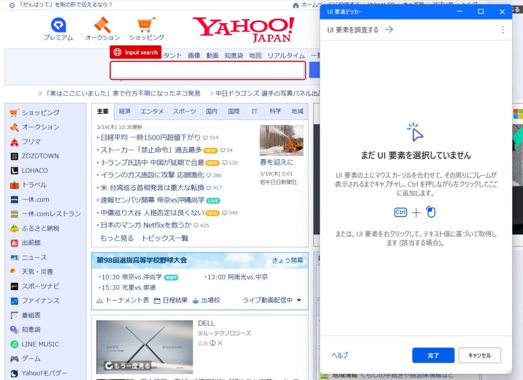 ③取得対象にカーソルを合わせて「Ctrl+クリック」をすると、その情報が読み取られ、UI要素としてPADに保存されます。