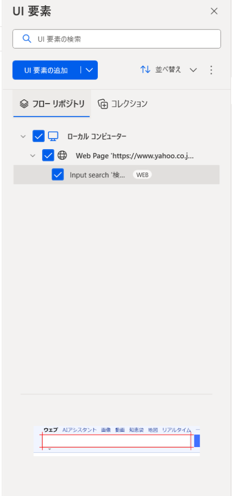 フロー作成時に録画機能を利用すると、操作と同時にUI要素も自動で登録されます。