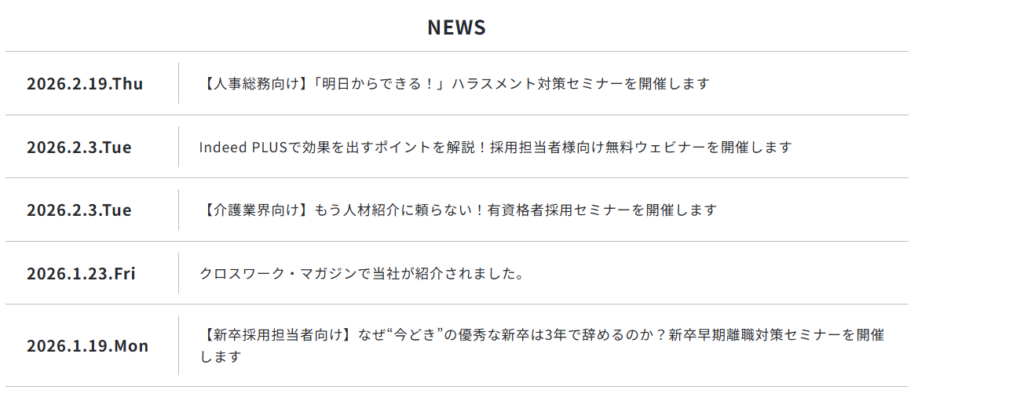 例えば、サイトの「NEWS」一覧から、