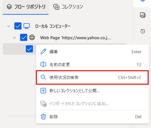 このセレクターを使って、フロー実行時に対象の要素を検索し、クリックや入力といった操作を実行します。