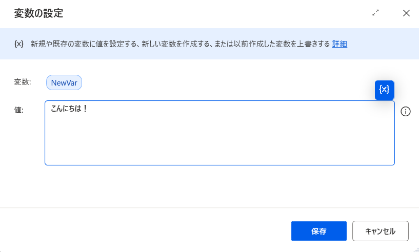 入出力変数: クラウドとの連携や、他のデスクトップフローと値を受け渡す際に使用します。