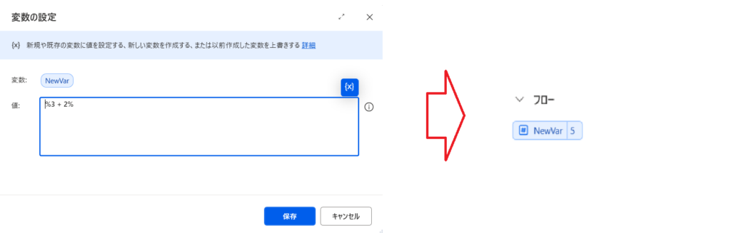 「変数の設定」アクションを使用した例を見てみましょう。