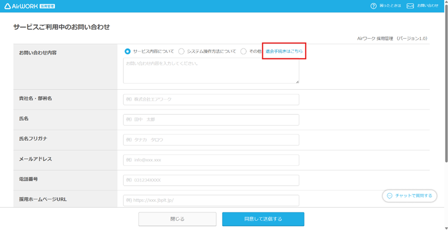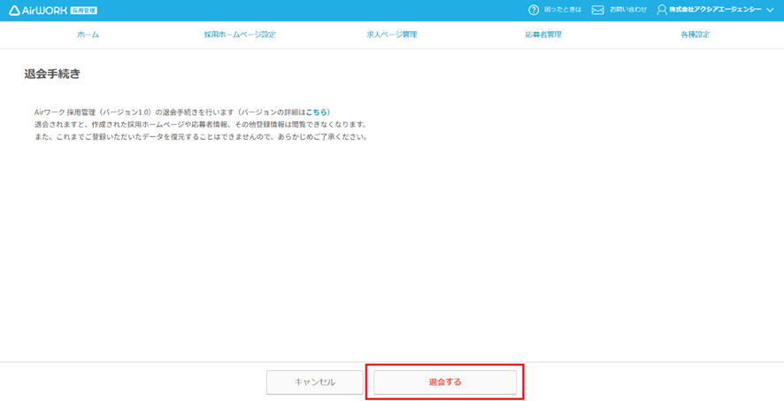 以上でAirワーク採用管理(バージョン1.0)の退会または公開停止となります。