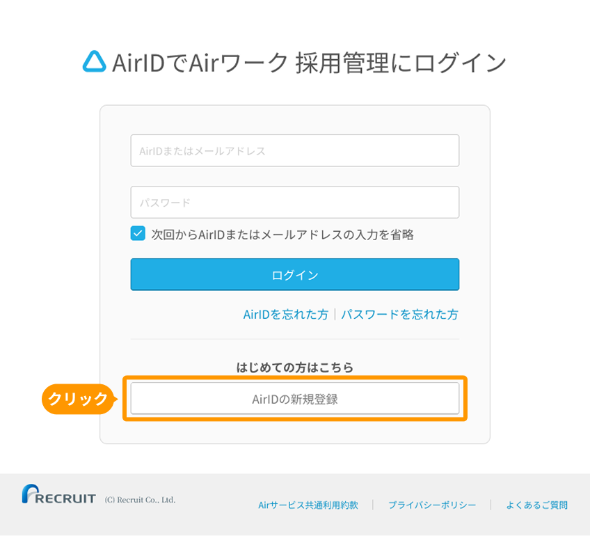 1-➂ 「AirIDの新規登録」をクリックし、AirIDの登録を行います。