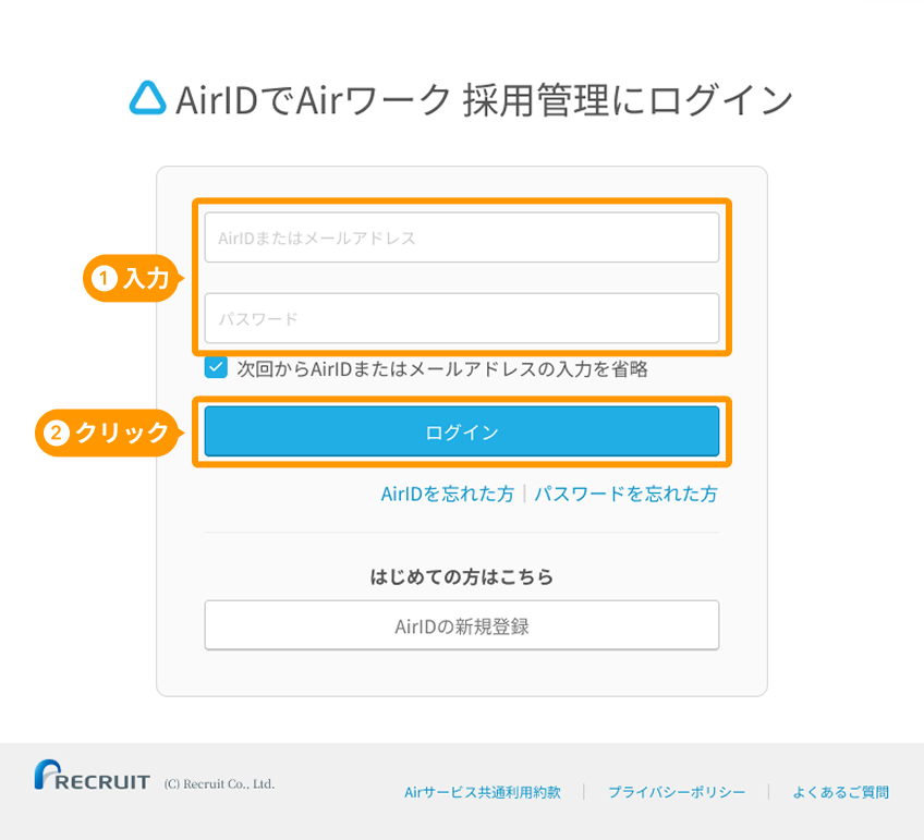 1-➃ AirID・パスワードを入力し、管理ページへログインする
