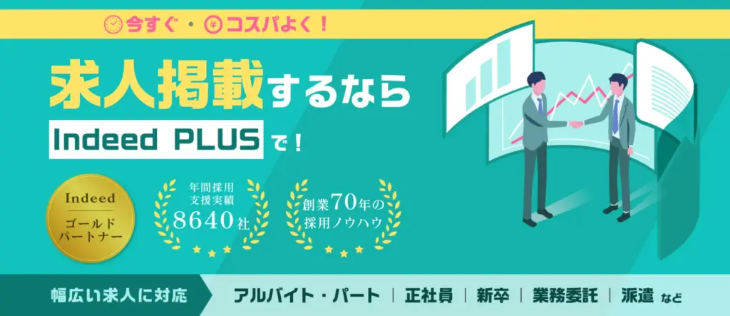 今すぐ・コスパよく求人掲載するなら「Indeed PLUS」!