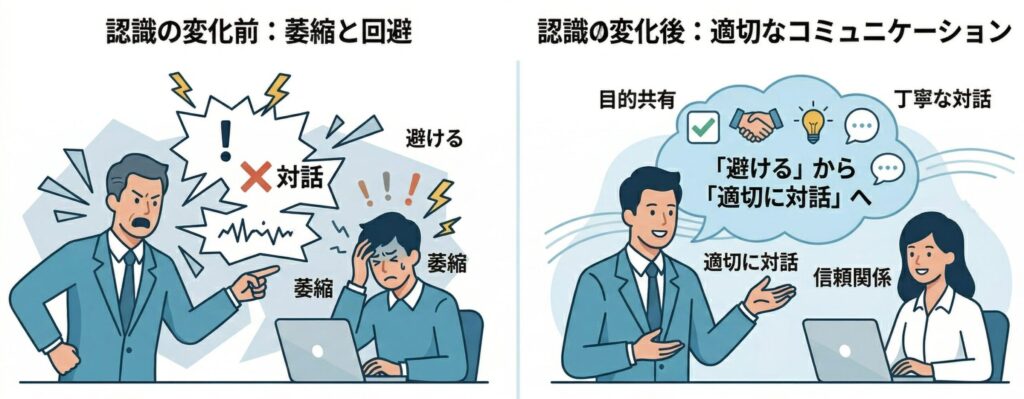 このような認識の変化は、現場における過度な萎縮や回避行動を抑制し、必要なコミュニケーションを維持する上での前提となる可能性があります。