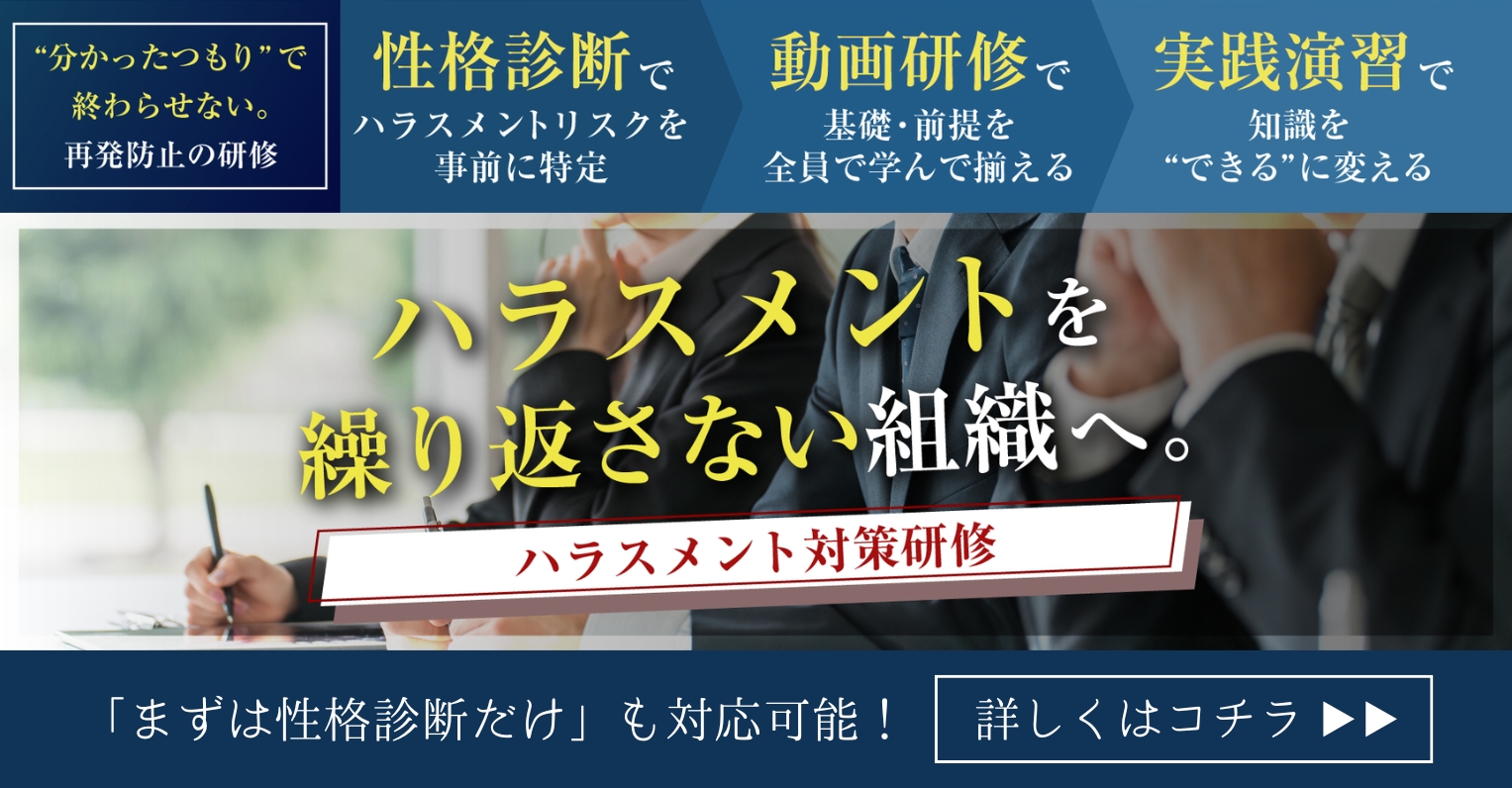- ハラスメントの原因を事前に可視化できる『性格診断』を実施