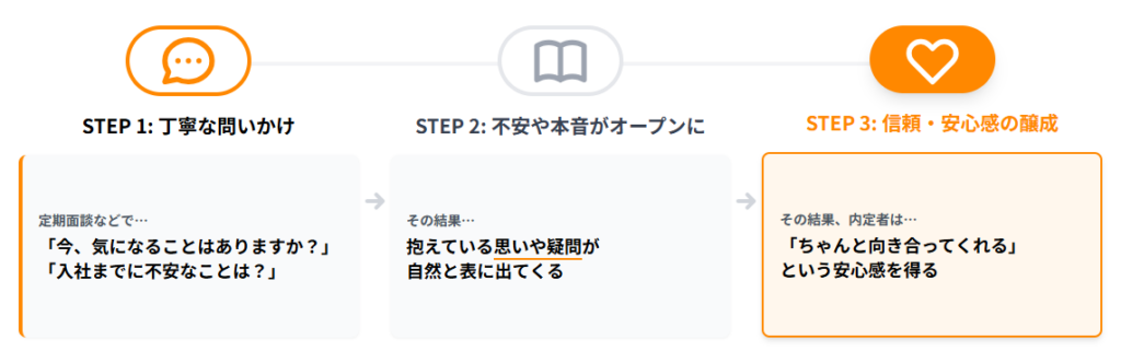 フォローのポイント②|本音を聞き、現場とつなぐ 信頼を育む内定者フォロー